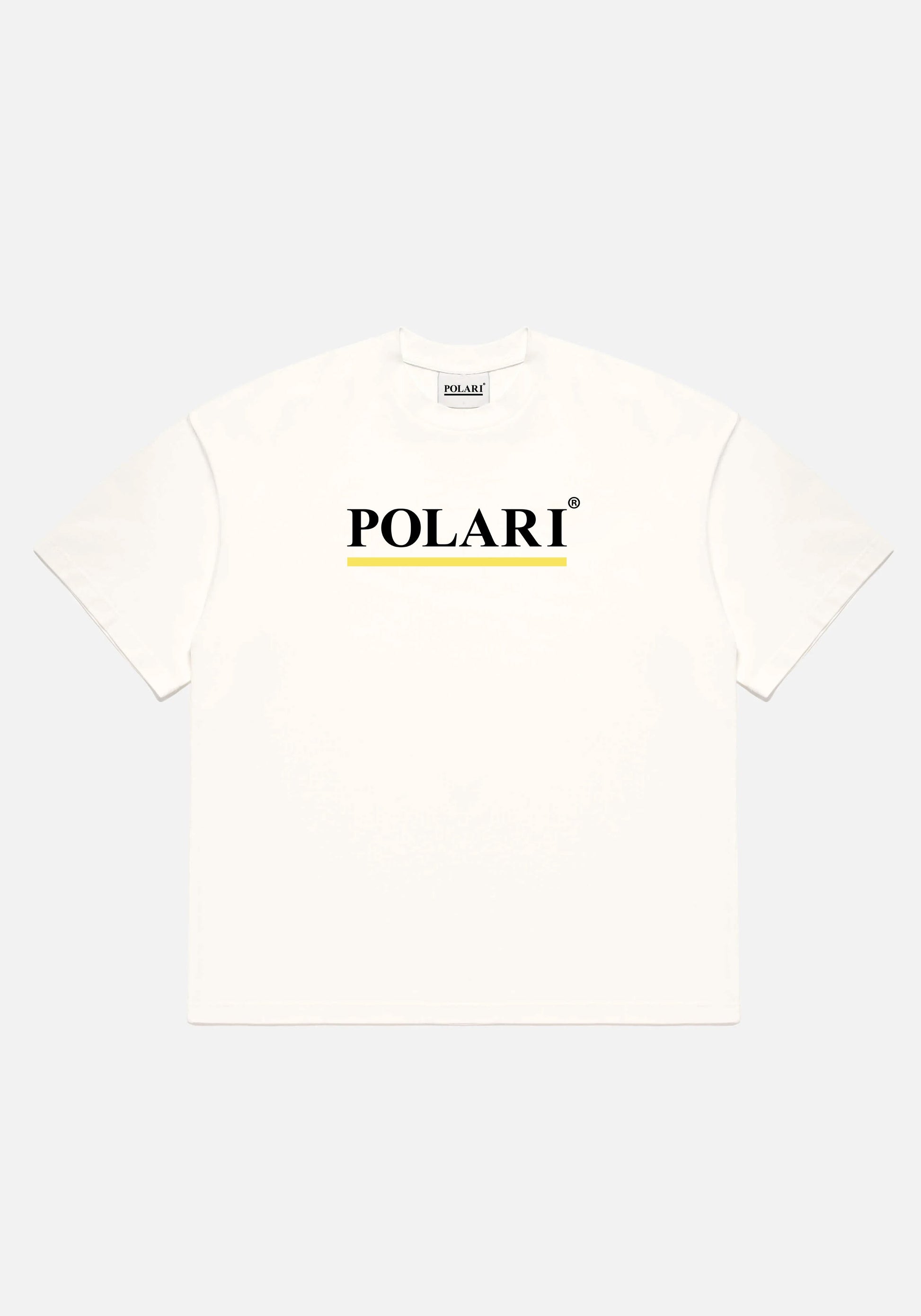 POLARI T-SHIRT IN WHITE. THIS HEAVYWEIGHT OVERSIZED T-SHIRT FEATURES THE OG POLARI LOGO. KEEP IT CLEAN AND FRESH WITH THE CLASSIC LOGO ON YOUR CHEST.