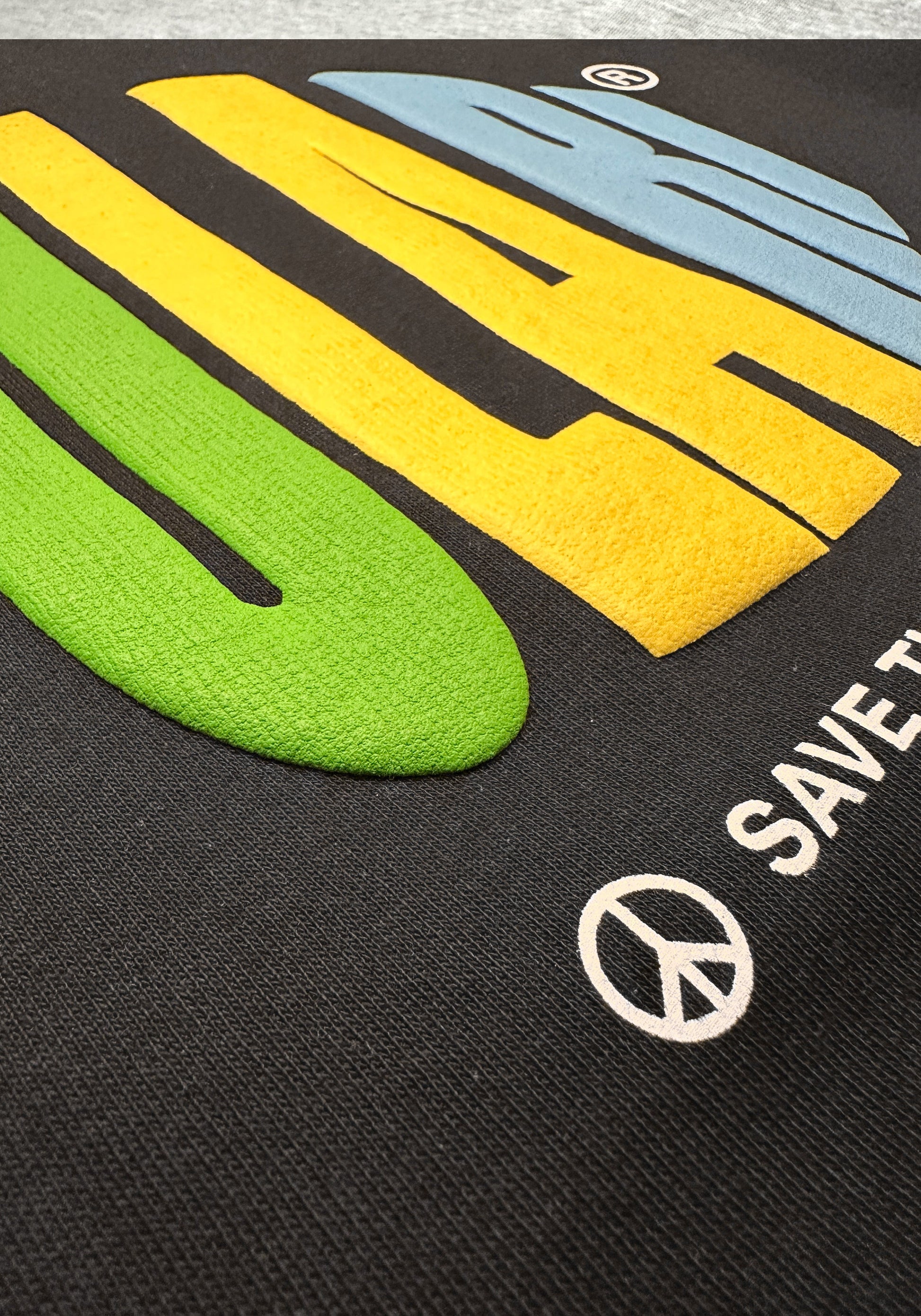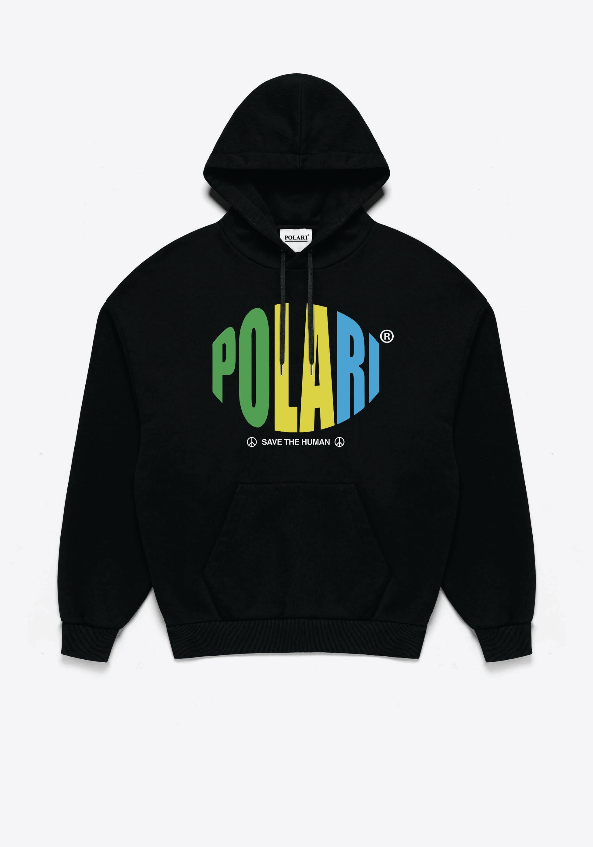 POLARI HOODED SWEATSHIRT IN BLACK. THIS HEAVYWEIGHT HOODY FEATURES OUR SAVE THE HUMAN GRAPHIC IN 3D PUFF PRINT.